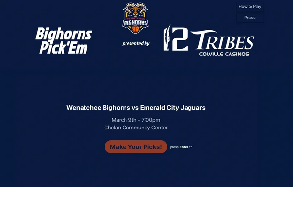 Current Prize: Win a $40 Play Credit at Lake Chelan Casino in Manson plus two tickets to a Bighorns Game!